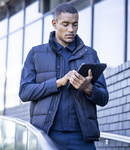 300D polyester outer. Houndstooth printed polyester lining.Recycled Warmloft insulation.Showerproof.Ribbed inner collar.Full length front zip with studded storm flap.Padded inner 12" laptop/tablet pocket.Inner security pocket.Two front zip pockets.Drawcord hem.Zip access for decoration.